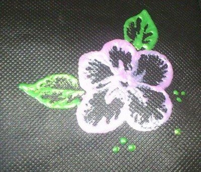 Hier will ich euch mal zeigen wie ich eine Blume auf Stoff gemalt habe. Es geht ganz einfach und super schnell. Einfach aus der Flasche auf den Stoff auftragen. Die Ränder einfach nach innen ziehen und schon entsteht dieser tolle Effekt und die Blume ist fertig.
