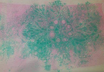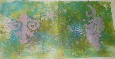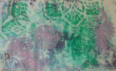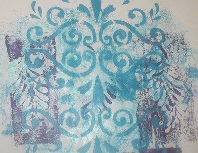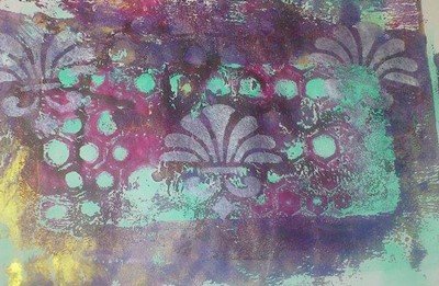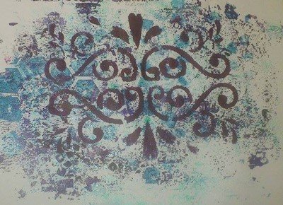 Hier mein Ergebnis mit GONIdecor, verschiedenen Schablonen, Silikonmatte, Gummiwalze, normales Kopierpapier und Zeit zum experimentieren.